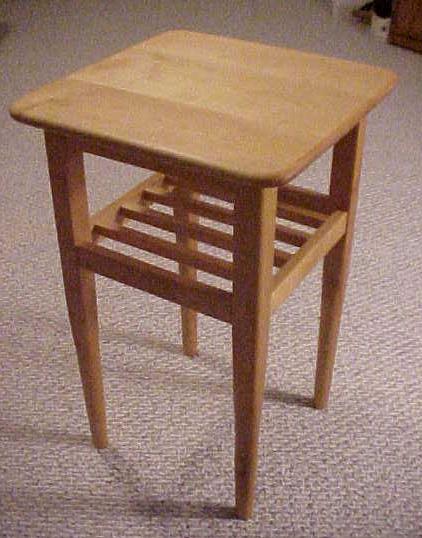 Project 3: A modest table. I asked my wife what kind of table should I make. She said that she would like a table to sit next to the toilet to hold her reading material. I designed and built the above table out of Birch and featured all mortise and tenon joints. When I brought the table home, my wife said that it was too nice to go in the bathroom.